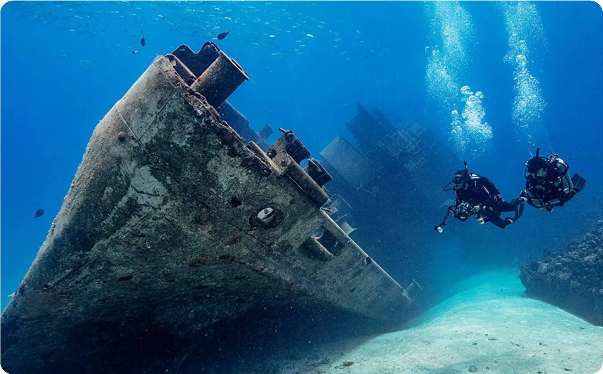 The Advanced Open Water Diver course enhances your skills with navigation, buoyancy, deep diving, and three adventure dives. Choose from options like Night, Wreck, and Underwater Photography.
